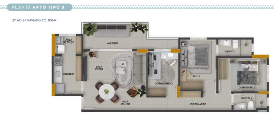 Apartamento em Uberlândia, com 85m². Possui 3 quartos (1 suíte), sala em 2 ambientes, varanda gourmet e 2 vagas de garagem. Localização privilegiada a 950m do Praia Clube. Condomínio com lazer completo: academia, espaço gourmet, playground, pet place e fireplace. Ideal para quem busca conforto e praticidade.