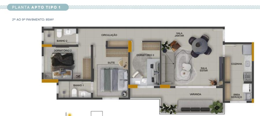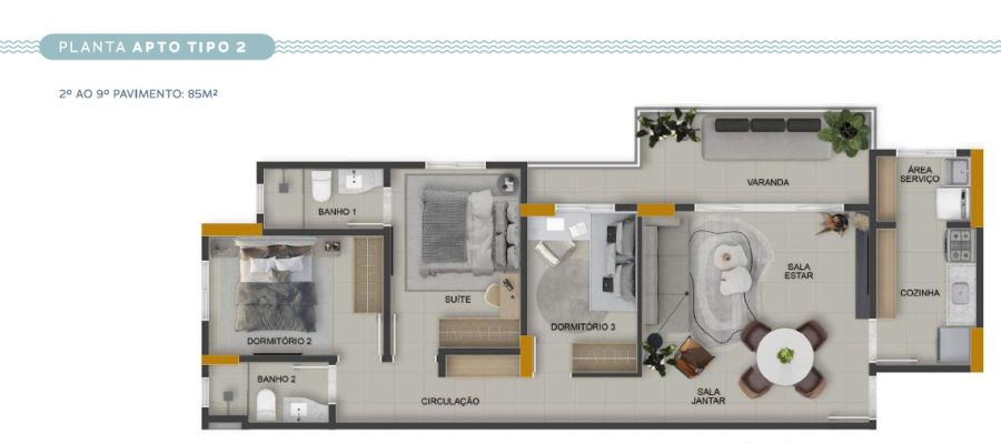 Área Total: 85,68 m² (R$ 8.286/m²)Área Privativa: 85,68 m²