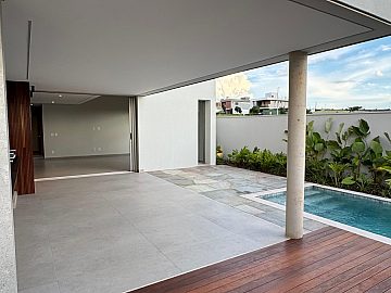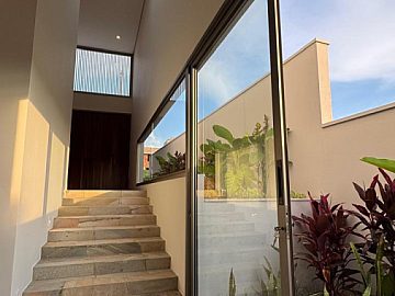 Sobrado novo, com 306m² de área construída em terreno de 400m², em local privilegiado dentro do condomínio. Arquitetura exclusiva, com três níveis de piso, proporcionando uma surpresa espacial única, com excelente Iluminação e ventilação naturais.