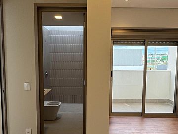 3 suítes no pavimento superior, todas com sacada, sendo que a suíte master, com mais de 42m², conta com um terraço exclusivo com ofurô. As outras duas suítes contam com banheiro com zenital de blindex com abertura e fechamento automático nos boxes.