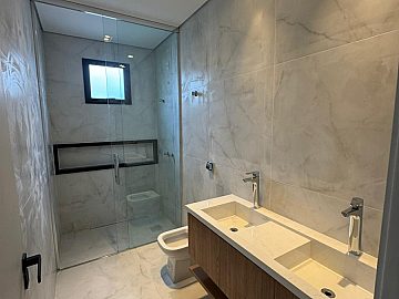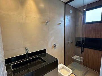 3 suítes, incluindo suíte master com 2 cubas e 2 chuveiros