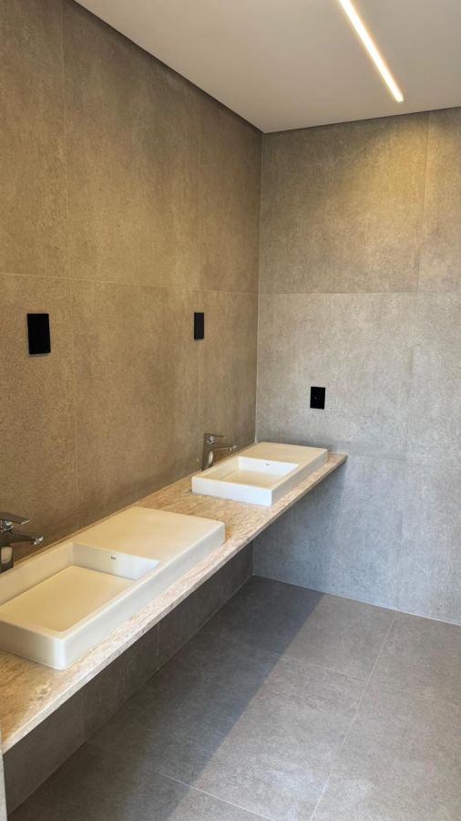 6 banheiros, sendo 3 nas suítes e 3 no térreo (1 lavabo, 1 escritório e 1 vestiário na área da piscina)