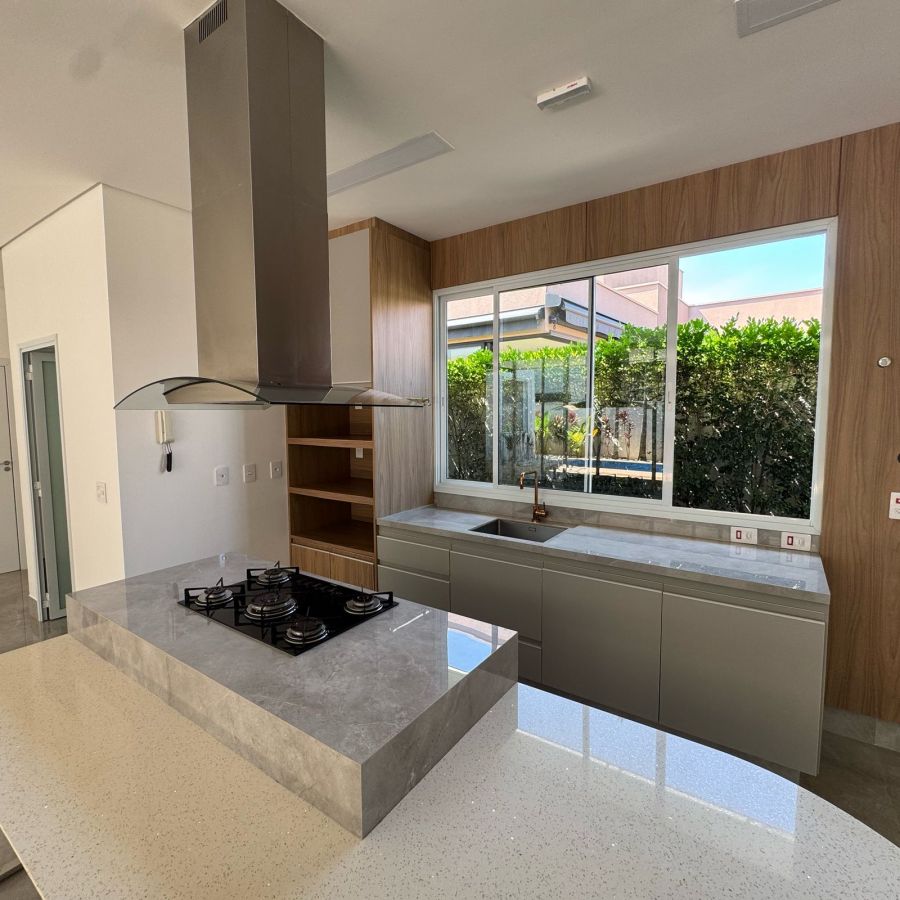 A área social destaca-se pela sala integrada à cozinha, luz natural e climatizada com dois aparelhos de ar condicionado, que cria um ambiente acolhedor e contemporâneo. Lavabo com fácil acesso para toda área social, inclusive externa. A lavanderia, ampla e prática, conta com acesso direto à despensa, otimizando a rotina diária.