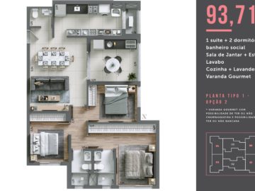 Plantas de 93,71m² = R$824.648,00 (2 suites ou 1 suite mais dois dormitorios)