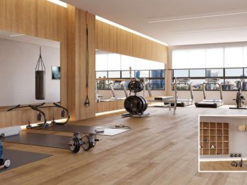Áreas de trabalho: Inclui espaços de coworking e live room, separados da área de lazer.