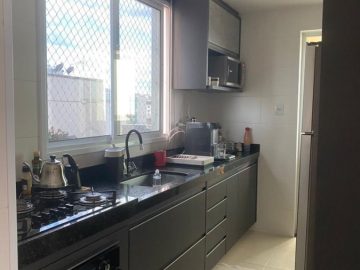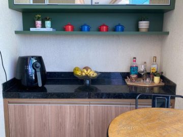 Cozinha: Cozinha funcional, com bancadas em granito e área de serviço separada. -